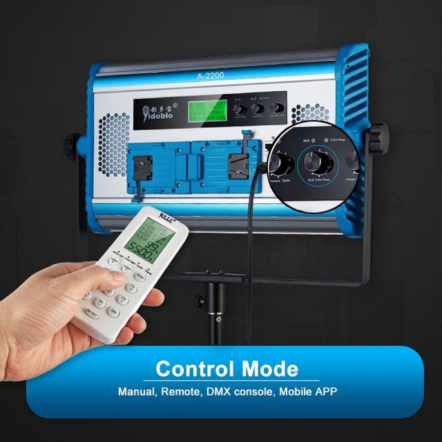 150W SMD LED panel 5500K ±300K, 15000 lm, ≥95RA, kut snopa 75°. Mogućnost ručnog i daljinskog upravljanja (daljinski nije uključen), podrška DMX protokola i upravljanje putem mobilne aplikacije. Napajanje 110-220V~ / 14,8V=, strujni adapter uključen. Ne uključuje bateriju (FD-BP130L) ili torbu za nošenje (prodaje se zasebno).