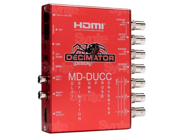 Dizajn decimatora MD-DUCC je višedefinicijski pretvarač gore/dolje/križ. Zvučni signal za sve stereo stupnjeve u HDMI stupnju može se pokrenuti od ostalih stereo parova dostupnih u SDI pristupu. Ako je aktivan skaler, zvučni signal prije svih ostalih stereo parova u SDI stupnju može se pokrenuti od ostalih stereo parova dostupnih na SDI stupnju.