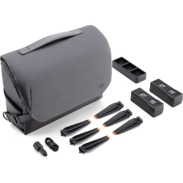 Set dodatne opreme DJI Fly More Kit namijenjen je za dronove DJI Mavic 3 i DJI Mavic 3 Classic. U setu ćete pronaći praktičnu torbu za rame, dvije rezervne baterije, stanicu za punjenje za tri baterije, auto-reduktor, USB-C kabel i 3 x rezervna propelera (par). Kompatibilan s Mavic 3, Mavic 3 Classic.
