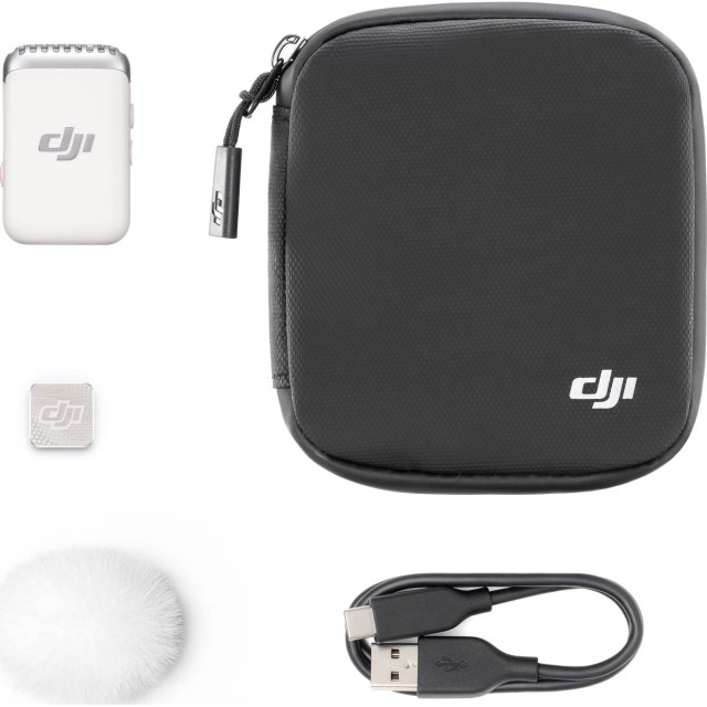 V balení (sada DJI Mic 2 TX Pearl White)):
