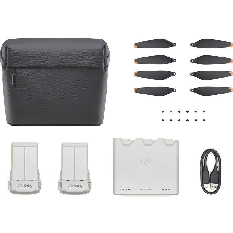 Komplet također uključuje dva para rezervnih propelera, USB-C 3.0 kabel za brzo punjenje i torbu za rame dizajniranu za sigurno i praktično nošenje drona Mini 3 Pro i sve dodatne opreme Fly More Kit. S inteligentnim upravljanjem baterijom, LED diodama statusa za praćenje u stvarnom vremenu i svim bitnim stvarima za održavanje vašeg drona u zraku, ovaj komplet idealan je za entuzijaste i profesionalne pilote dronova kojima je potrebno dulje vrijeme leta na lokaciji.