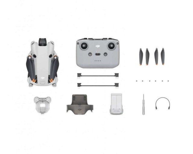1x DJI Mini 4 Pro dron, 1x DJI RC-N2 daljinski upravljač, 1x RC Micro USB-C kabel, 1x RC Lightning kabel, 1x pametna baterija, 1x zamjenski tihi propeler (par), 6x vijaka, 1x odvijač, 1x gimbal Poklopac, 1x držač propelera, 1x USB-C na USB-C kabel za napajanje