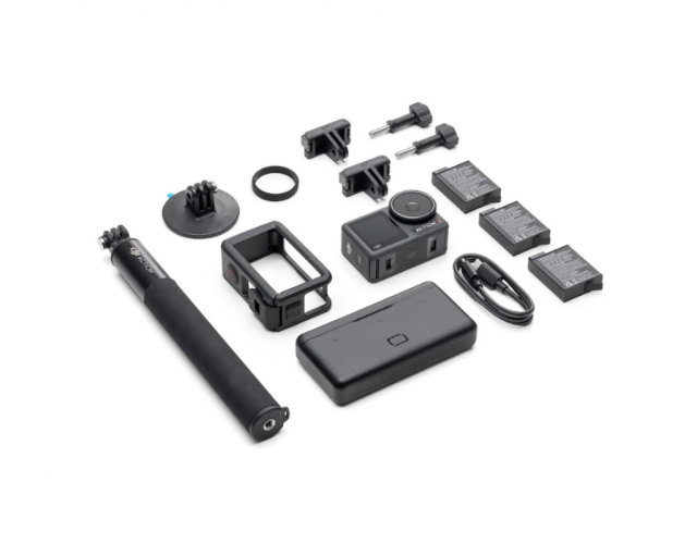 Sada obsahuje: 1x Osmo Action 3, 3x Externí baterie, 1x Vertikální ochranný rám, 2x Chránič objektivu, 2x Rychloupínací držák adaptéru, 1x lepící základna, 2x Zajišťovací šroub, 1x Kabel PD typu C, 1x Multifunkční pouzdro na baterie, 1x Prodlužovací 1,5 m, 2x Nálepka s logem DJI, 1x stručný průvodce, 1x Záruční list.