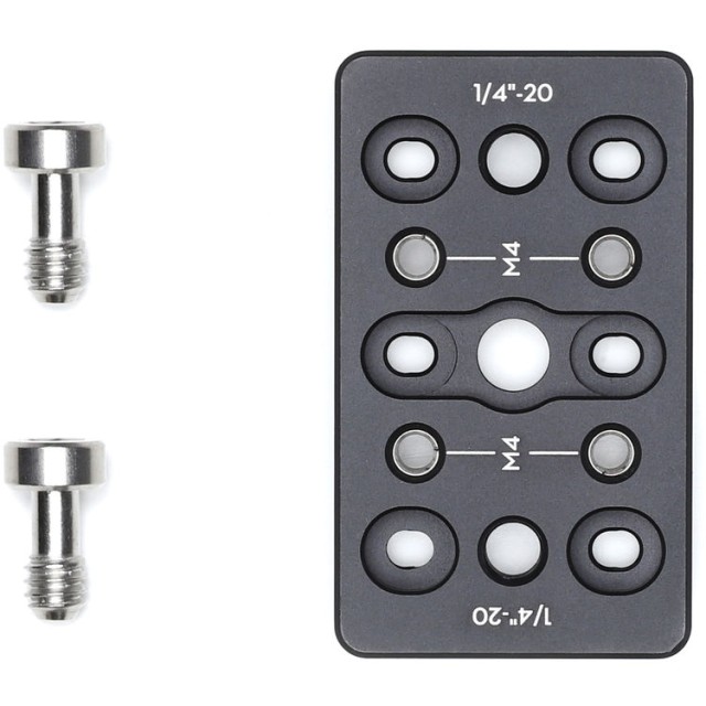 DJI Ronin-S Cheese Plate je svestrana ploča za montažu dodatne opreme koja se pričvršćuje na bočnu stranu Ronin-S gimbal-a, omogućujući vertikalno ili horizontalno postavljanje dodatne opreme pomoću navojnih rupa M4 ili 1/4"-20.