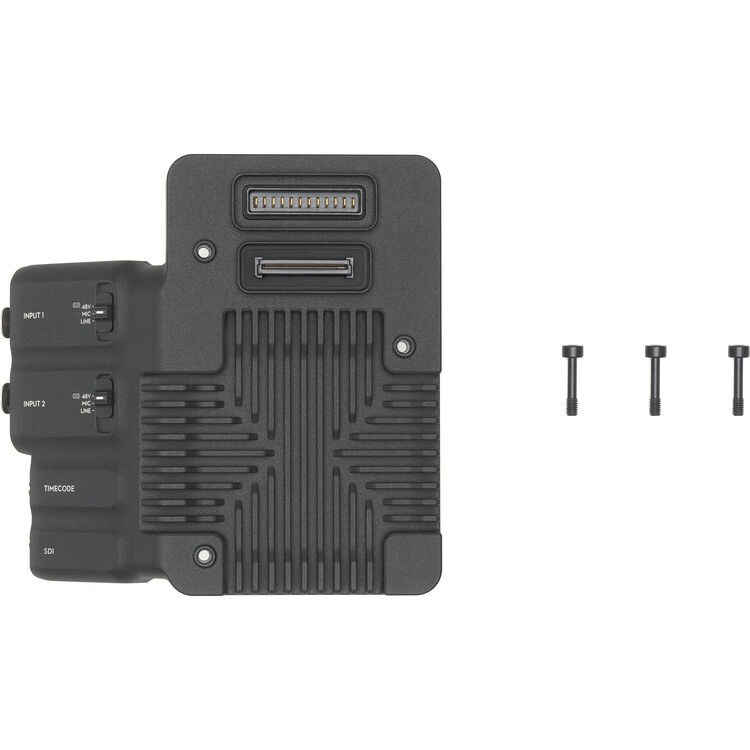 DJI Ronin 4D ploča za proširenje je profesionalni dodatak dizajniran za proširenje mogućnosti povezivanja vaše Ronin 4D 6K ili 8K kamere. Sigurno se pričvršćuje na stražnju stranu kamere pomoću tri vijka za montažu i vlasničkog konektora, a ova ploča pruža svestrane mogućnosti ulaza i izlaza za napredne postavke snimanja filmova. Uključuje BNC SDI izlaz za čiste video signale, BNC priključak za dijeljenje vremenskog koda s kompatibilnim uređajima kao što su video odašiljači i dva XLR 3-pinska audio ulaza. Svaki XLR ulaz ima prekidače za smještaj mikrofona, linijskih signala i +48V fantomskog napajanja za profesionalnu audio opremu. Ova ploča za proširenje osigurava pojednostavljenu integraciju audio i video radnih procesa, omogućujući filmašima održavanje visokokvalitetnog prijenosa signala na setu.
