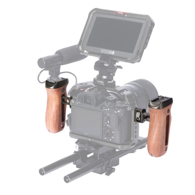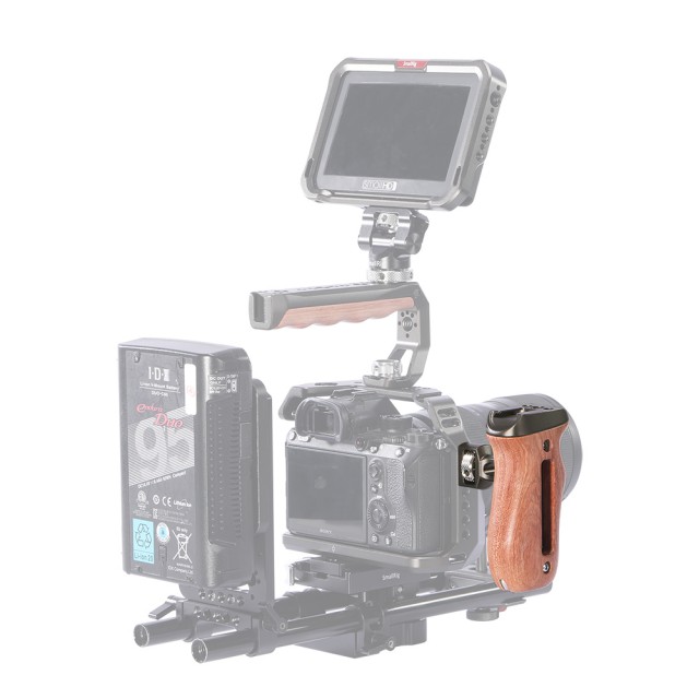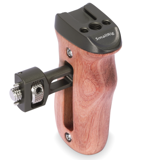 Drvena bočna ručka SmallRig s nosačem tipa ARRI HSS2642 dizajnirana je za udobno držanje za povećanje stabilizacije i pričvršćivanje dodataka za snimatelje. Rukohvat se pričvršćuje na kavez ili opremu kamere pomoću ARRI 3/8"-16 vijka s dva klina za lociranje. Odvajanjem metalnog priključka, rukohvat se može konfigurirati za korištenje desnom ili lijevom rukom. Ima 3/8"-16 , 1/4" držači za pribor -20 i hladna cipela na vrhu za dodavanje montažne ruke, svjetla, mikrofona ili drugih dodataka. Vijci se pričvršćuju na klizni mehanizam koji omogućuje pomicanje ručke gore-dolje za željeni položaj. A ugrađen imbus ključ unutar dna omogućuje vam podešavanje položaja ručke i za dodatnu sigurnost. Glatka drvena ručka pruža čvrst i udoban zahvat i dobro radi čak iu situacijama s niskim temperaturama.