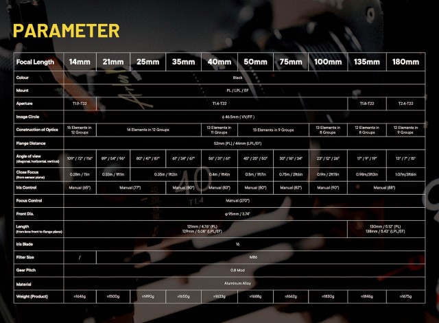 Objektivi žarišne duljine 14 mm, 21 mm i 25 mm sadrže po dva asferična elementa, što poboljšava kvalitetu slike pri slabom osvjetljenju. Zahvaljujući vrlo preciznom dizajnu, učinkovito ispravljaju sferičnu aberaciju i komu te smanjuju širokokutno izobličenje i astigmatizam. Cijeli asortiman koristi optičke materijale niske disperzije koji potiskuju kromatsku aberaciju, što rezultira iznimnim optičkim performansama. Ugrađeni plutajući elementi leća značajno minimiziraju aberaciju tijekom prijelaza fokusa s beskonačnosti na blizinu; minimiziranje disanja je samo po sebi razumljivo.