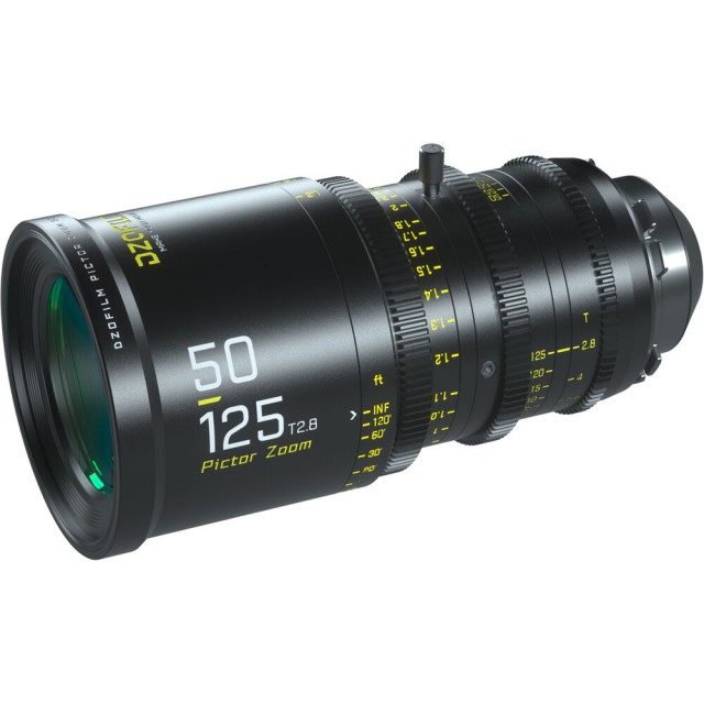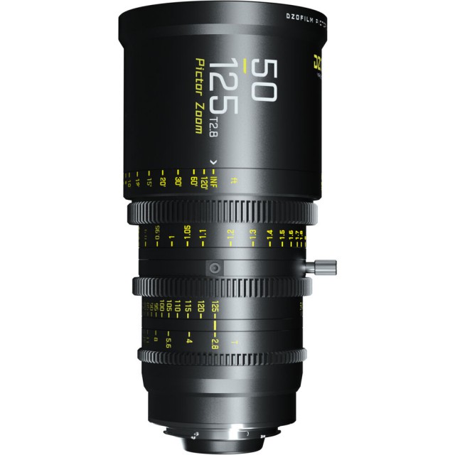 DZO Pictor 50-125mm T2.8 parfocal film objektiv pokriva Super 35 / APS-C format senzora, nudi T2.8 otvor blende u cijelom rasponu žarišnih duljina i dolazi uklj. izmjenjivi PL i EF bajuneti. Konstrukcija leće praktički eliminira disanje i jamči oštar crtež cijelom površinom kao i lijep prikaz scene izvan dubinske oštrine zahvaljujući dijafragmi koja se sastoji od 16 lamela. Naravno, tu su i prstenovi zupčanika za fokus, otvor blende i zumiranje za jednostavno daljinsko upravljanje pomoću sustava za bočno fokusiranje (M0.8; hod prstena za fokus 270°). Prednji promjer je standardnih 95 mm za uobičajene kompendije, navoj filtera je 86 mm. Tu je i stopa za podupiranje objektiva unutar nosača. Crna varijanta. Težina cca 1700 g. Za PL i EF bajunete.