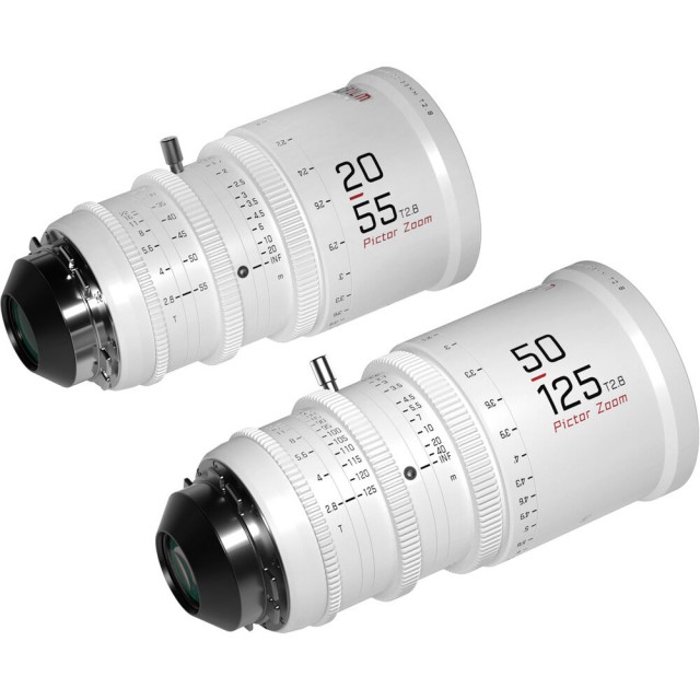 DZO Pictor 50-125 mm T2.8 i 20-55 mm T2.8 parfokalne filmske leće pokrivaju senzore formata Super 35 / APS-C, nude T2.8 otvor blende u cijelom rasponu žarišne duljine i dolaze uklj. izmjenjivi PL i EF bajuneti. Konstrukcija leća praktički eliminira disanje i jamči oštar crtež cijelom površinom kao i lijep prikaz scene izvan dubinske oštrine zahvaljujući dijafragmi sastavljenoj od 16 lamela. Naravno, tu su i prstenovi zupčanika za fokus, otvor blende i zumiranje za jednostavno daljinsko upravljanje pomoću sustava za bočno fokusiranje (M0.8; hod prstena za fokus 270°). Prednji promjer je standardnih 95 mm za uobičajene kompendije, navoj filtera je 86 mm. Tu je i stopa za podupiranje objektiva unutar nosača. Težina cca 1700 g (50-125mm) odn 1520 g (20-55 mm).
