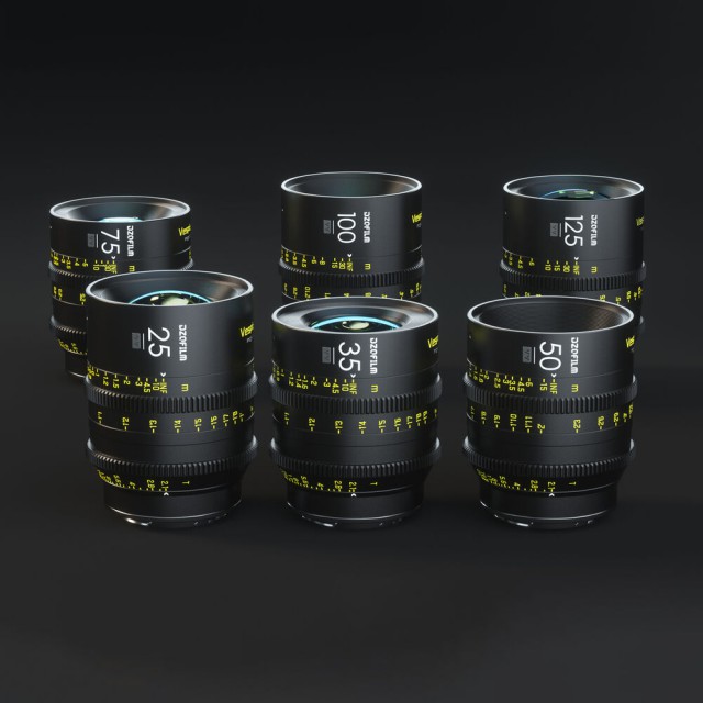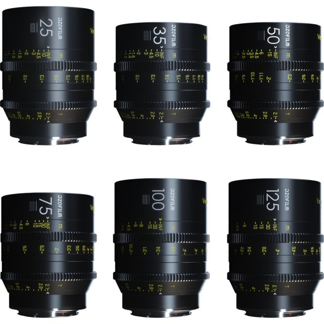 Set od 6 DZOFilm VESPID serije ručnih objektiva sa (izmjenjivim) EF bajonetom uključuje modele sa žarišnim duljinama 25, 35, 50, 75, 100 i 125 mm i otvorom blende T2.1. Objektivi pokrivaju senzore do veličine FF (kružni promjer 46,5 mm), ali su lagani i kompaktni čak i za snimanje iz ruke, stabilizatore ili dronove. Konstrukcija leća prilagođena je video snimanju: jamči minimalno "disanje", spriječeno je okretanje prednjeg dijela leće i promjena njezine veličine tijekom fokusiranja, isti položaj prstenova za fokusiranje i otvora blende osigurava jednostavnu izmjenu leće u oprema. Set također uključuje tvrdu torbu za nošenje.