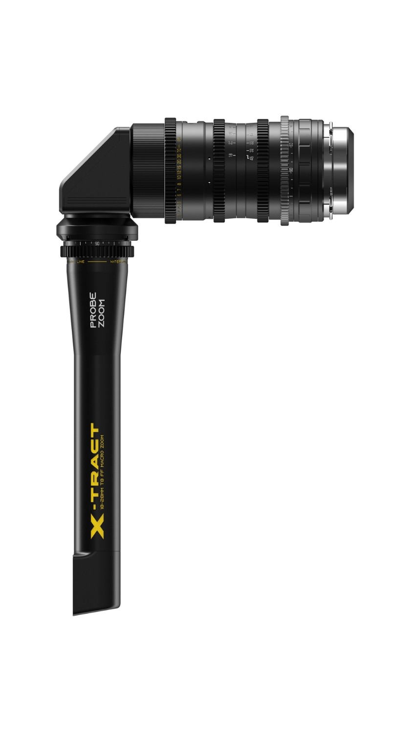Širokokutni X-tract 18-28mm T8 objektiv s probom i zumiranjem redefinira makro kinematografiju s izmjenjivim prednjim modulima od 0° (izravni pogled) i 90° (pravokutni), nudeći svestrane perspektive snimanja i neograničen kreativni potencijal. Dizajniran za puni format, potpuno je kompatibilan s S35 formatima, pružajući ekvivalentan raspon od 22-35mm T8 u Arri Alexa 35 Open Gate načinu rada, idealnom za komercijalno snimanje filmova. Odvojivi dizajn prednjeg modula omogućuje besprijekorno prebacivanje između postavki izravnog pogleda i pravokutnog pogleda, omogućujući jednostavno podešavanje žarišne duljine i kuta čak i u skučenim prostorima. Ova prilagodljivost poboljšava prostornu dubinu i slojevitost u vizualnim prikazima, nudeći filmašima veću fleksibilnost za kreativno pripovijedanje.