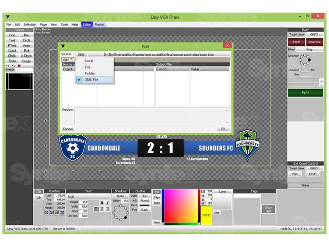 ESM CG je podnaslov dizajniran za stvaranje gotovo bilo koje grafike uživo za emitiranje, događaje uživo ili sportske događaje. Statička ili animirana grafika može se stvoriti u slojevima i prekriti videom uživo u stvarnom vremenu. Prednost je mogućnost izrade gotovih predložaka, gdje se pojedinačni podaci mogu uređivati iz vanjskih…