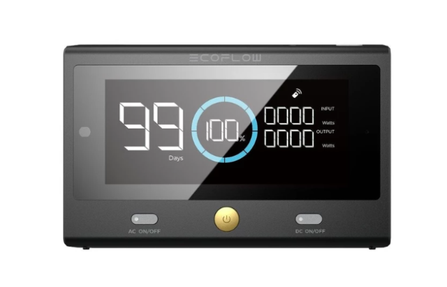 Daljinski upravljač EcoFlow DELTA Pro prvi je daljinski upravljač ikad dizajniran posebno za prijenosnu električnu stanicu—isključivo za EcoFlow DELTA Pro. Pruža drugi, potpuno funkcionalni zaslon koji preslikava glavni zaslon uređaja DELTA Pro, omogućujući vam praćenje potrošnje energije, preostalog vremena baterije i statusa sustava bez izravnog pristupa jedinici.