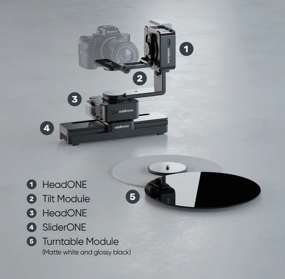 Edelkrone SlideAction Bundle - Kompletan: Napredni sustav kontrole pokreta uključujući HeadONE v2 (x2), SliderONE v3, modul TurnTable i modul nagiba za svestrane, precizne kinematografske snimke.