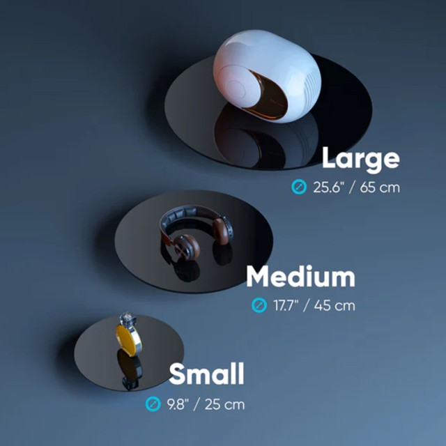 Modul okretnog stola dizajniran je za glatku rotaciju proizvoda od 360° i dostupan je u tri veličine kako bi odgovarao različitim potrebama. Modeli Medium i Large opremljeni su postoljem od pleksiglasa za povećanu stabilnost .