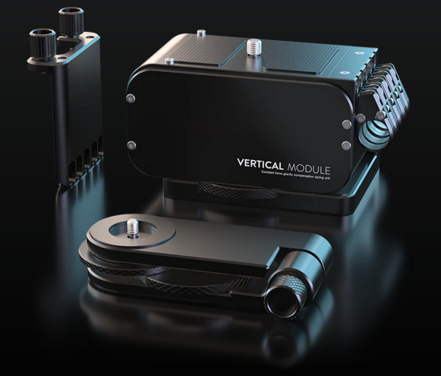 -  Potpuno mehanički - Vertikalni modul kompenzira gravitaciju i koristi opruge konstantne sile kako bi sustav bio bestežinski pod bilo kojim kutom. Nisu potrebne dodatne baterije!