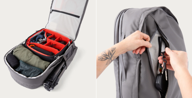 The Moment Everything Backpack 28L Weekender u sivoj boji idealan je za 2–3-dnevne izlete, bilo da nosite odjeću, fotoaparatsku opremu ili tehnološke potrepštine. Njegovo potpuno otvaranje u obliku školjke i unutarnji rastezljivi džepovi omogućuju jednostavno pakiranje i organizaciju, dok podstavljeni pretinac za laptop prima uređaje do 16".