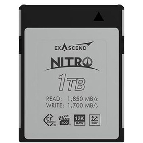 CFexpress memorijske kartice tipa B serije Exascend Nitro imaju IP67 certifikat i novi tip CFexpress kontrolera za visoku otpornost na utjecaje okoline ili visoke performanse. Kartice koriste NAND flash memoriju i PCIe 3.0 / NVMe 1.2 sučelje za sekvencijalnu brzinu čitanja do 1850 MB/s i sekvencijalnu brzinu pisanja do 1700 MB/s! Zahvaljujući VPG-400 certifikatu, zajamčeno je da brzina pisanja neće pasti ispod 400 MB/s. Kartice su dizajnirane za maksimalnu pouzdanost i nude MTBF (Mean Time Before Failure) vrijednost od 2 milijuna sati, životni vijek (TBW, ukupan broj upisanih terabajta) od 600 TB (za verziju od 1 TB), UBER (Uncorrectable Bit Error Rate) ) <1 sektor na 10 17 očitanih bitova, otpornost na temperature u rasponu od -10 – 70°C te na vlagu i prašinu (IP67). Kartice također nude prilagodljivu kontrolu temperature, SuperCruise algoritme za osiguranje maksimalne stabilnosti brzine pisanja, zaštitni lak za tiskane ploče prema vojnom standardu MIL-I-46058C, RAID ECC tehnologiju koja koristi RAID5 za visoku cjelovitost podataka i druge inovacije.