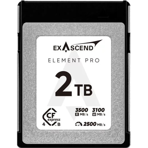 Exascend CFexpress 4.0 Type B Element Pro Series 2TB dizajniran je za vrhunsku kinematografsku produkciju, nudeći neusporedivu izvedbu i izdržljivost. S impresivnim kapacitetom pohrane od 2 TB, pruža dovoljno prostora za produžene sesije snimanja u 8K i 12K rezolucijama. Njegovo PCIe 4.0 / NVMe 1.4 sučelje osigurava munjevito velike brzine, s maksimalnim brzinama čitanja od 3500 MB/s i brzinama pisanja od 3100 MB/s, što omogućuje brz prijenos podataka i neprekinuto snimanje do 120 fps.