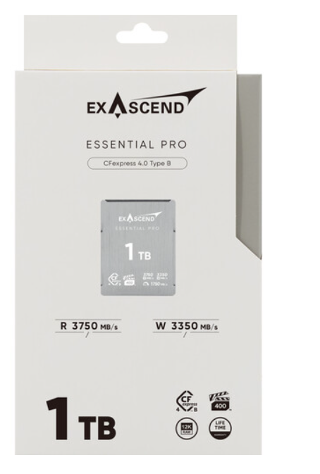 Exascend EXPC4EB001TB Essential Pro CFexpress 4.0 Type B 1TB kartica osnažuje kreatore brzinom čitanja od 3750 MB/s i pisanja od 3350 MB/s za besprijekorne 8K/12K 120fps videozapise. Certificirana je s VPG-400 certifikatom, ima adaptivnu termičku kontrolu, visoku izdržljivost (600TB TBW) i doživotno jamstvo s oporavkom podataka.