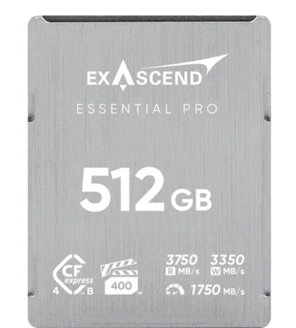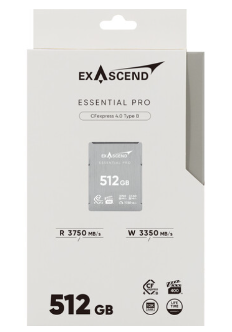 Exascend EXPC4EB512GB Essential Pro CFexpress 4.0 Type B 512GB kartica pruža brzinu čitanja od 3750 MB/s i brzinu pisanja od 3350 MB/s za 8K/12K 120fps video. VPG-400 certifikat s adaptivnom termalnom kontrolom, izdržljivošću od 300 TB TBW i doživotnim jamstvom s oporavkom podataka.