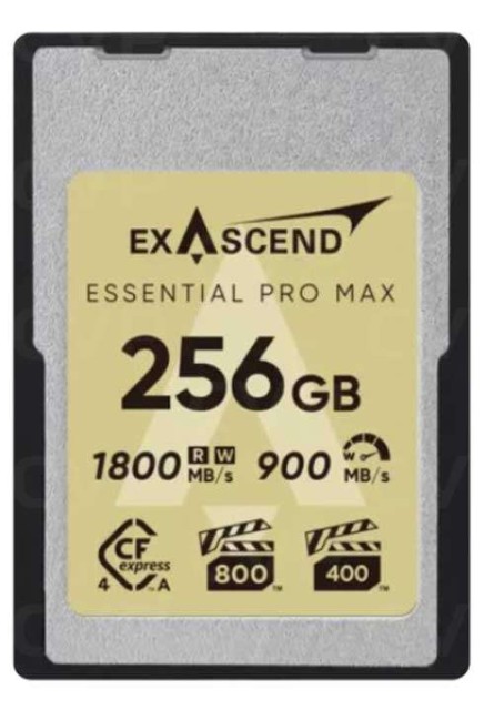 Memorijska kartica Exascend Essential Pro Max CFexpress 4.0 Type A od 256 GB izrađena je za radne procese kamere sljedeće generacije koji zahtijevaju brzinu, stabilnost i izdržljivost. Pokretana standardom CFexpress 4.0, pruža dvostruko veću propusnost od CFexpress 2.0, omogućujući brže snimanje, brže prebacivanje podataka i učinkovitiju postprodukciju za videozapise visoke rezolucije od 8K i 12K te brze fotografije.