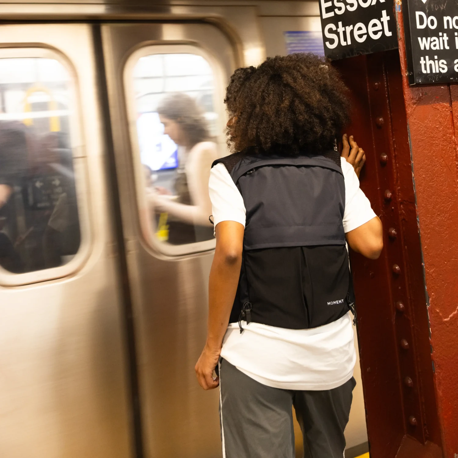 Prednje naramenice inspirirane prslukom s fleksibilnim džepom s patentnim zatvaračem i rastezljivim džepom za brzi pristup kameri, filmu, telefonu, filterima ili malim grickalicama.