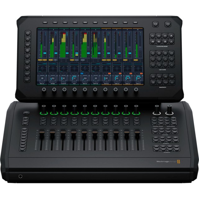 Fairlight Live Audio Panel 10 je stolni kontrolni panel s 10 motoriziranih fader-a i velikim zaslonom osjetljivim na dodir, dizajniran za profesionalno miksanje zvuka uživo s Fairlight Live.