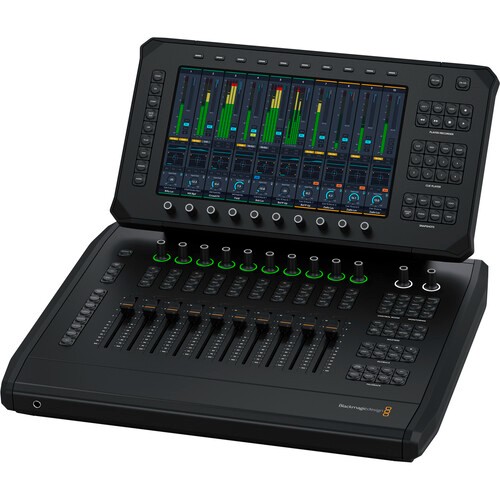 Dodirni zaslon prikazuje informacije o kanalnim trakama, razinama, ekvilajzeru, obradi dinamike i sučeljima za plug-ine. Idealno za kućne studije i manje postprodukcijske pogone. Potpuno integrirano s Fairlight Live.
