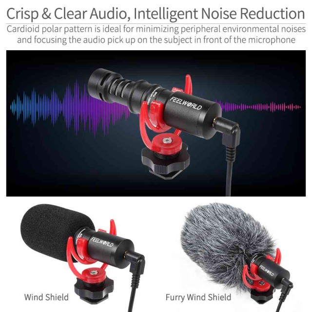 Praktičan i lagan - Video mikrofon teži samo 42 g i jednostavan je za nošenje. DSLR fotoaparati ili pametni telefoni ne zahtijevaju baterije. Kardioidni mikrofon s udarnim nosačem može smanjiti periferne zvukove iz okoline.
