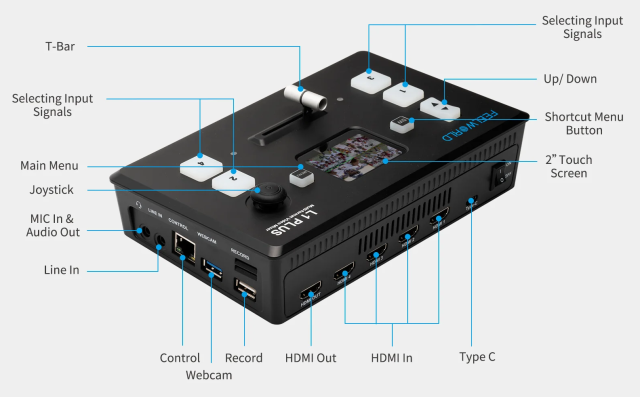 Možete koristiti HDMI kabel za povezivanje HDMI izlaza L1 PLUS s monitorom s HDMI ulaznim sučeljem, tako da možete vidjeti sve kamere, audio mjerače, pregled i završni izlaz programa na istom zaslonu, sva prebacivanja su u stvarnom vremenu . HDMI izlaz podržava postavku rezolucije i podržava do 1080p@60.