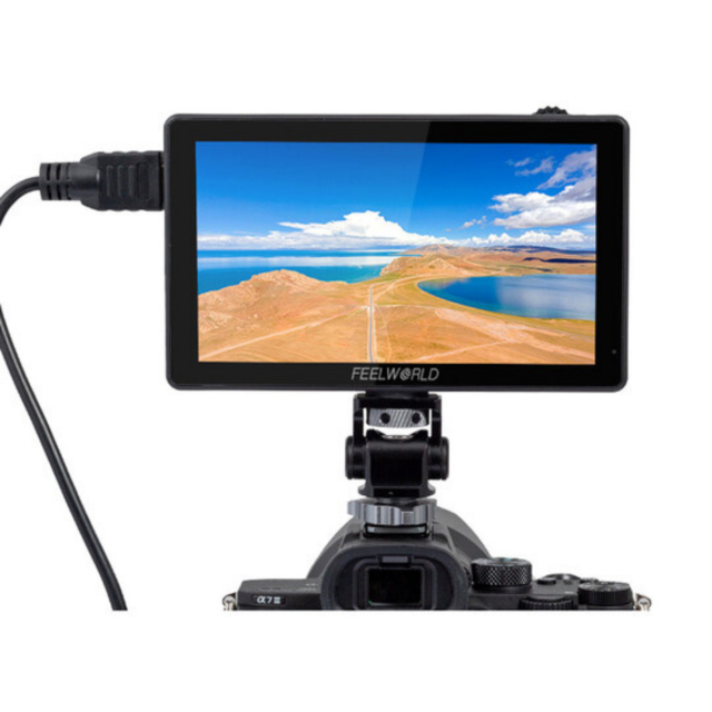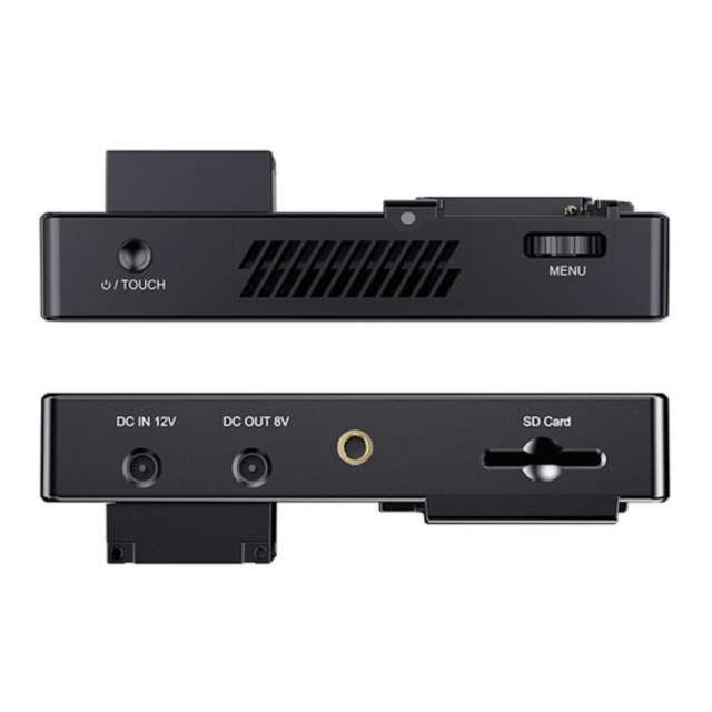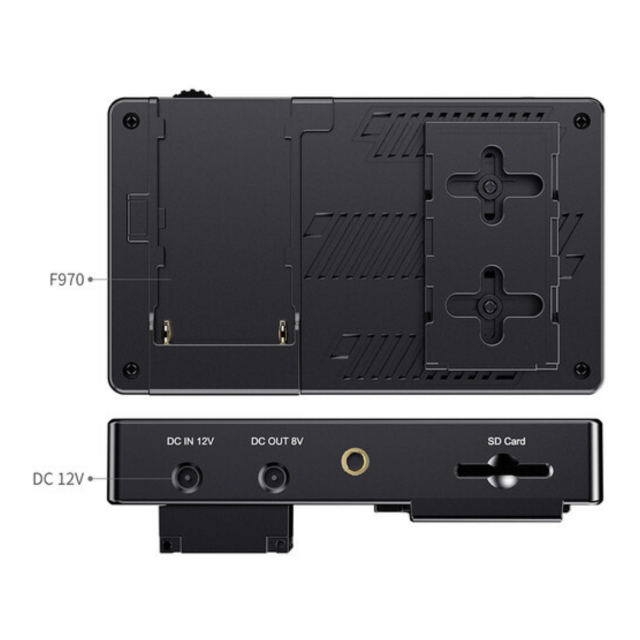 5,5" monitor kamere s visokom svjetlinom (3000 cd/m²), dodirnim zaslonom i podrškom za 3D LUT korekcije (integrirane unaprijed postavljene postavke HLG 2020, HLG 709, HLG P3 HDR 3D LUT i Rec709 De-slog3/SLog2, SLog3, LogC, V - Prijavite; ili uvezite svoje vlastite do 50 LUT datoteka pomoću SD kartice). Monitor također nudi senzor ambijentalnog osvjetljenja za automatsko zatamnjivanje zaslona, napajanje s vanjskom baterijom (F970, itd., nije uključeno), izlaz za slušalice, 8V= izlaz za napajanje, npr. za napajanje kamere... Na stražnjoj stijenci također se nalazi lažna/redukcijska NP-F baterija za jednostavnu montažu/napajanje npr. bežičnog prijemnika. Isporučuje se uklj. smanjenje za utičnicu za bljeskalicu i Micro HDMI kabel.