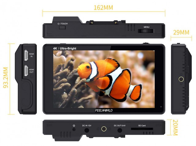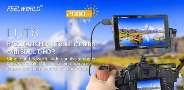 6" monitor kamere s visokom svjetlinom (2600 cd/m²), zaslonom osjetljivim na dodir i podrškom za 3D LUT korekcije (integrirane unaprijed postavljene postavke HLG 2020, HLG 709, HLG P3 HDR 3D LUT i Rec709 De-slog3/SLog2, SLog3, LogC, V- Prijavite se ili uvezite svoje do 50 LUT datoteka pomoću SD kartice). Isporučuje se uklj. Mini/Micro HDMI-HDMI kabel i montažni nosač.LUT6 varijanta s 4K HDMI I/O.