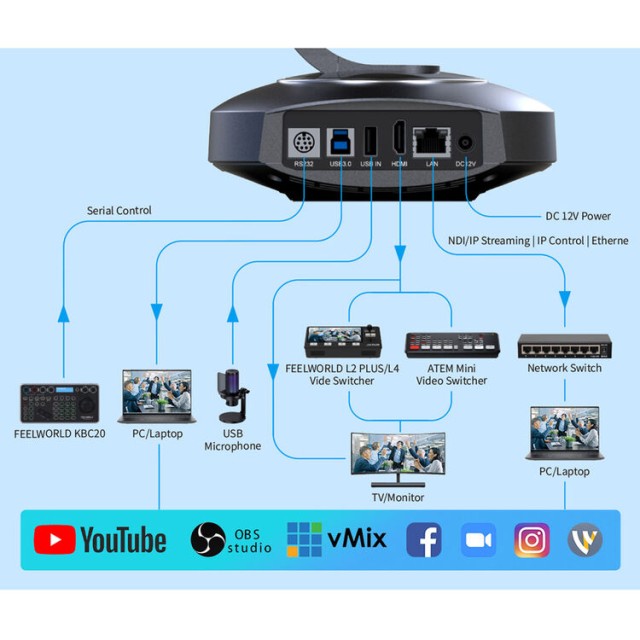 | Control protocol | VISCA, Pelco-D, Pelco-P, RS-232, IP (NDI/ONVIF) |