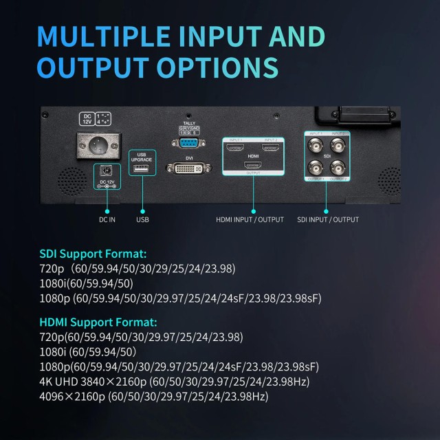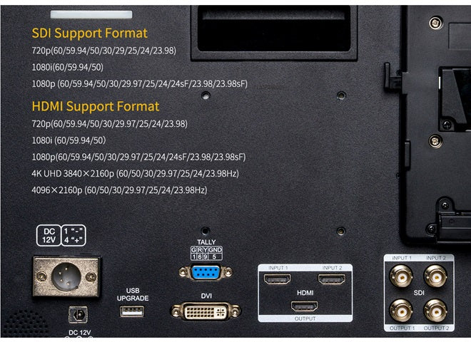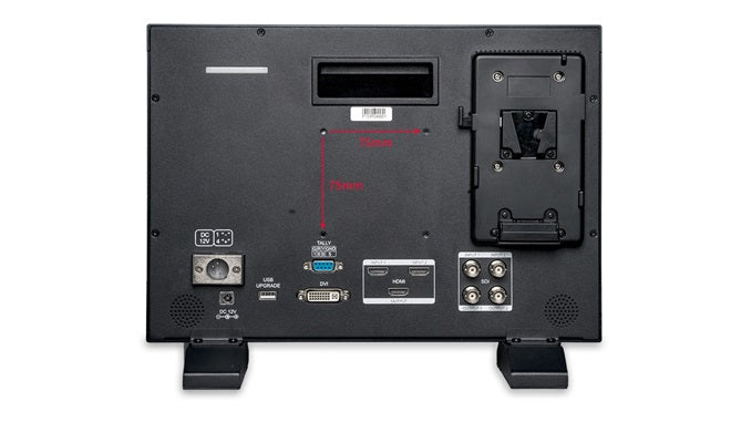 Stražnja strana monitora s 75x75 mm VESA točkama za montiranje, možete ga montirati u stalak ili objesiti na zid. Idealno za studijsko emitiranje ili produkciju uživo.