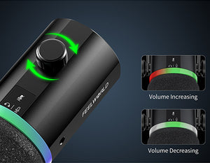 Gumb za glasnoću može prilagoditi glasnoću mikrofona ili slušalica u stvarnom vremenu, omogućujući vam da uživate u zvuku visoke kvalitete.