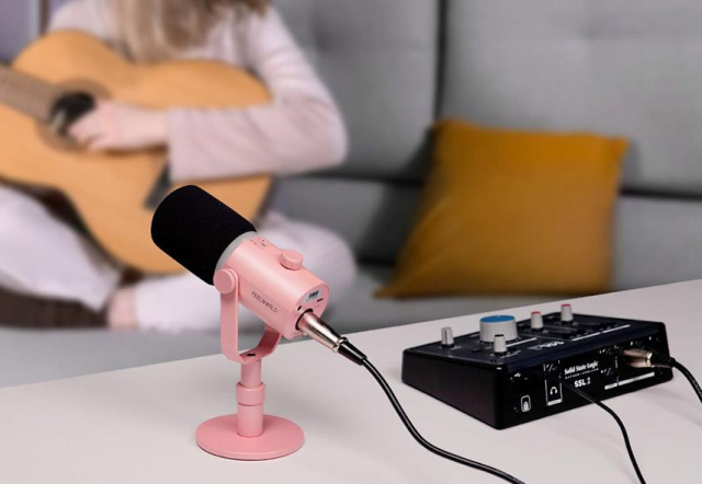 Feelworld PM1 je profesionalni dinamički mikrofon u elegantnoj ružičastoj završnoj obradi , savršen za streaming i podcasting. Ima svestrane USB-C i XLR izlaze , kardioidni polarni uzorak i dinamično višebojno RGB osvjetljenje . Mikrofon dolazi s metalnim stolnim stalkom za praktično postavljanje.