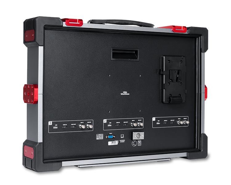 Monitor se napaja putem DC 12–24 V, XLR ili V-mount ploče za baterije i uključuje VESA nosač od 100 x 100 mm za svestranu instalaciju. Robustan i profesionalan, pogodan je za emitiranje, filmsku i studijsku produkciju.