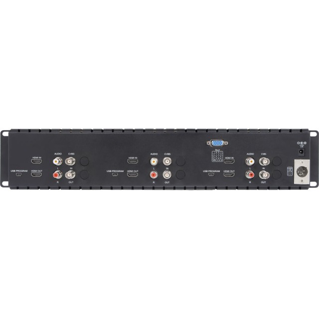 FeelWorld T51-H ima tri 5" 800x480 zaslona u tankom 2RU potpuno metalnom stalku. Stražnja ploča ima tri seta HDMI i kompozitnih BNC ulaza i izlaza, tri seta RCA audio ulaza i jedan Tally port. Na vrhu svaki zaslon ima trobojno razmjerno svjetlo na prednjoj ploči, a svaki zaslon ima izlaz za slušalice za audio nadzor. Za napajanje, T51-H je opremljen DC…