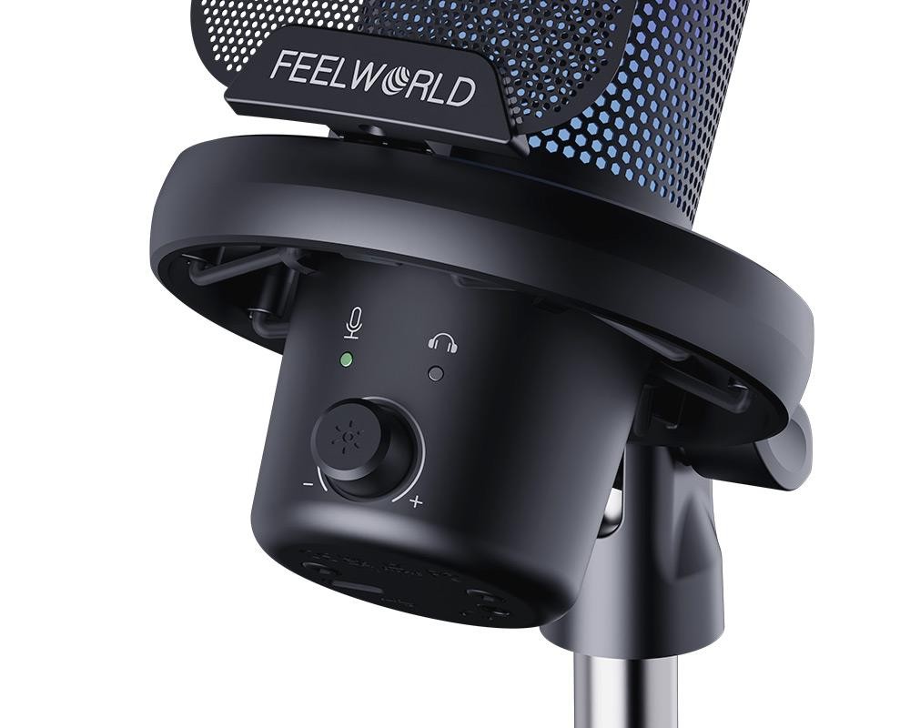 Feelworld VM1-AS je USB kondenzatorski mikrofon s plug-and-play tehnologijom dizajniran za streaming, igranje i podcasting. Ima kardioidni polarni uzorak za čist zvuk, namjenski gumb za isključivanje zvuka/poništavanje buke s jednom tipkom i prilagodljivo višemodno RGB osvjetljenje za poboljšanje vaše postavke.
