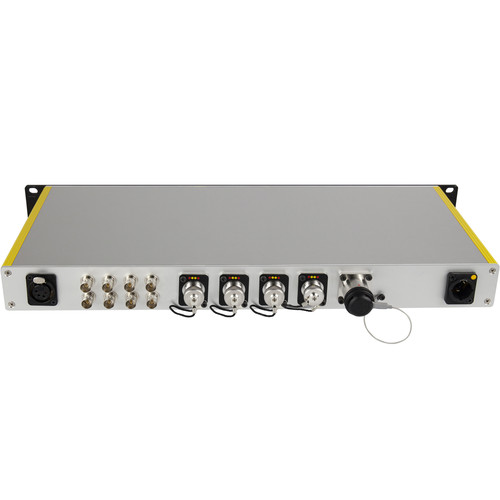 Zahvaljujući četiri hibridna optička ulaza, Fiber Node One omogućuje besprijekorno povezivanje do četiri PTZ Monk optička konektora. Ovaj sklop omogućuje kontrolu, distribuciju energije i mogućnosti nadzora za do četiri PTZ kamere s 3G-SDI sučeljem.