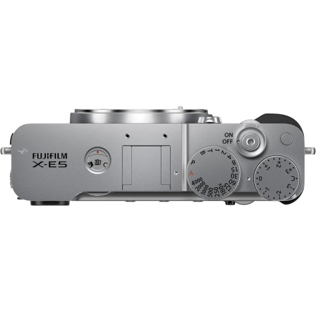 FUJIFILM X-E5 je lagani i kompaktni digitalni fotoaparat bez zrcala težine približno 445 g , s 40,2-megapikselnim senzorom "X-Trans™ CMOS 5 HR" s BSI tehnologijom i brzim procesorom za obradu slike "X-Processor 5". Boja: srebrna . U prodaji od 08/2025 .