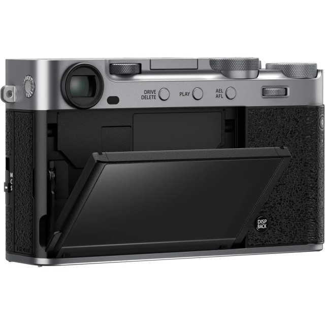 Stražnji nagibni zaslon može se okrenuti prema gore i naprijed do 180 stupnjeva , što omogućuje razne kompozicije. Omogućuje snimanje s tla ili odozgo, a prikladan je i za selfije.