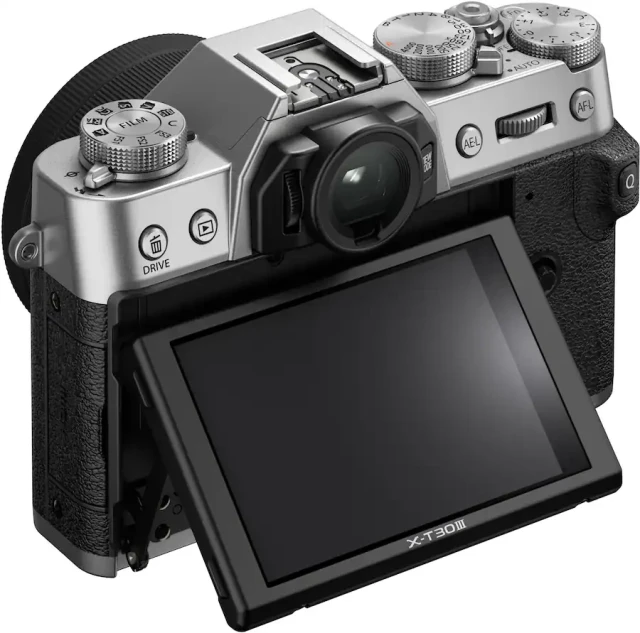 FUJIFILM X-T30 III je kompaktni, retro stilizirani APS-C fotoaparat bez zrcala težine 378 g koji spaja klasični dizajn s vrhunskim performansama. Opremljen je 26,1 MP X-Trans CMOS 4 BSI senzorom, X-Processorom 5, 6.2K/30p 10-bitnim videom, AI autofokusom s detekcijom objekta i revolucionarnim odabirom simulacije filma na vrhu s 20 unaprijed postavljenih postavki plus tri prilagodljiva utora; poboljšan je Portrait Enhancerom, 4-stop digitalnom stabilizacijom slike, središnjim EVF-om od 2,36 milijuna točaka, nagibnim zaslonom osjetljivim na dodir, bežičnim ispisom Instax i do 425 snimaka po punjenju, pružajući intuitivnu, kreativnu kontrolu za fotografe i kreatore sadržaja koji cijene stil, brzinu i izvrsnost izravno iz fotoaparata.