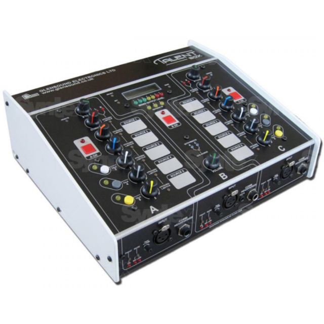 Glensound Talent Box je nova generacija sustava za komentiranje. Omogućuje spajanje do tri komentatora, a daljinski upravljač možete spojiti na bilo koju od tri pozicije. Razinu izlazne glasnoće može kontrolirati daljinski tehničar putem web sučelja. Talent Box se može spojiti na veći sustav komentiranja.