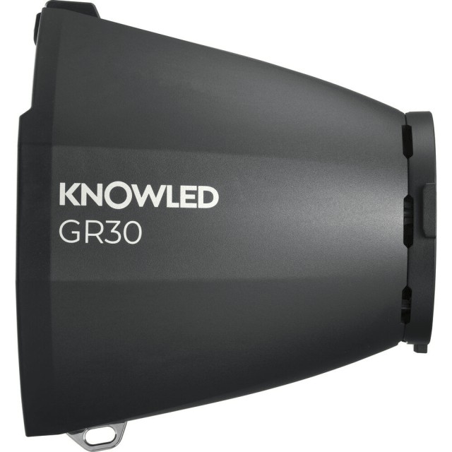 Godox Knowled 30° reflektor dizajniran je za MG1200BI, MG2400BI, MG1200R i MG2400R svjetla, oblikujući širenje snopa i smanjujući raspršeno svjetlo. Njegova jednostavna montaža s brzim okretanjem omogućuje sigurno prianjanje, pružajući umjereni kut osvjetljenja od 30° idealan za veće subjekte ili setove.
