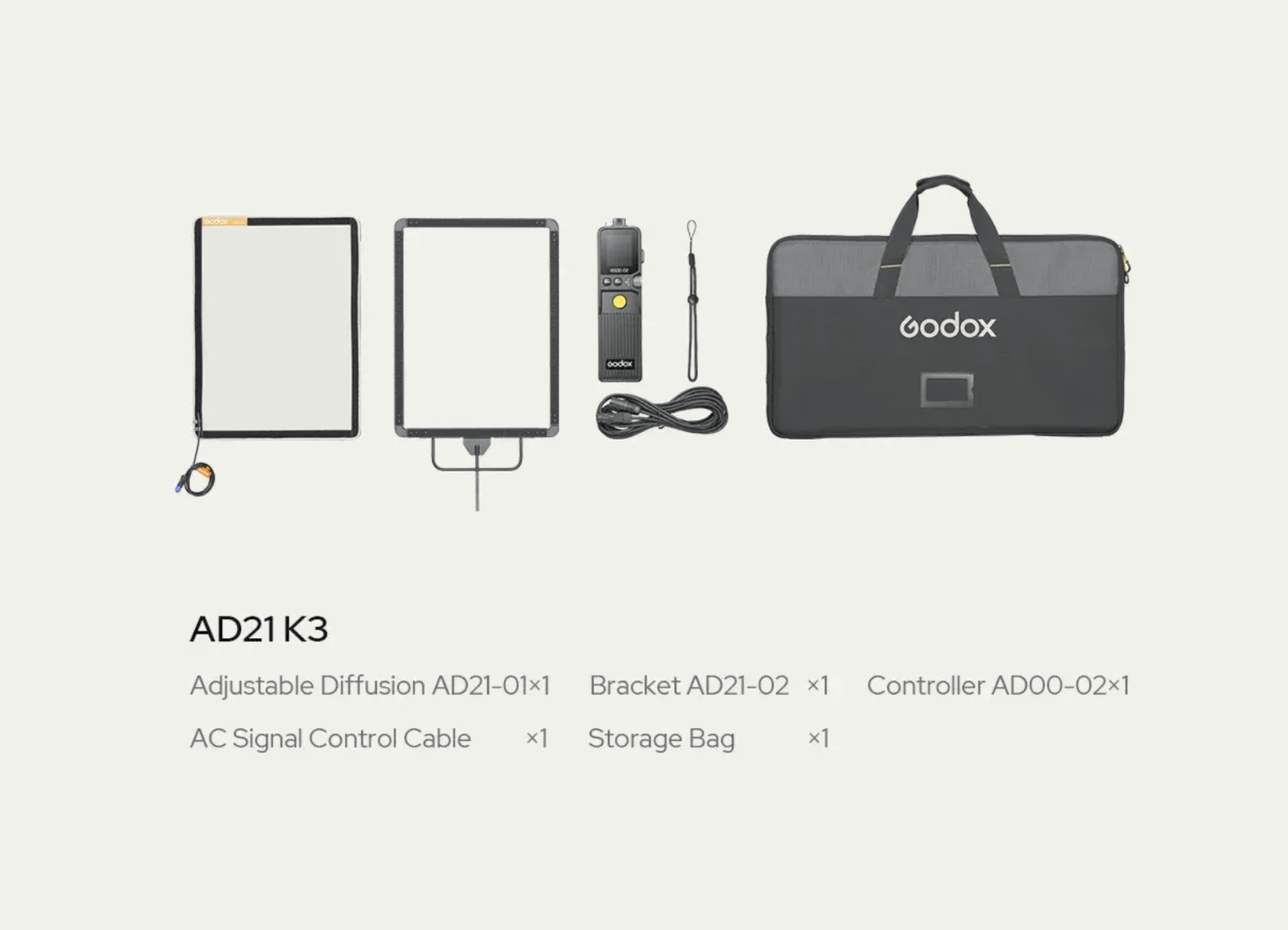 Godox Knowled AD21 K3 podesivi difuzor Pruža elektronički kontroliranu, motoriziranu difuziju s glatkim prijelazima od tvrdog do ultra mekog svjetla. S dvostrukim načinima upravljanja, performansama bez treperenja do 300 fps, višestrukim opcijama napajanja i širokom kompatibilnošću putem Bluetootha, DMX-a i ugrađenih kontrola, to je prijenosno, sklopivo rješenje za precizno poboljšanje rasvjete na setu.