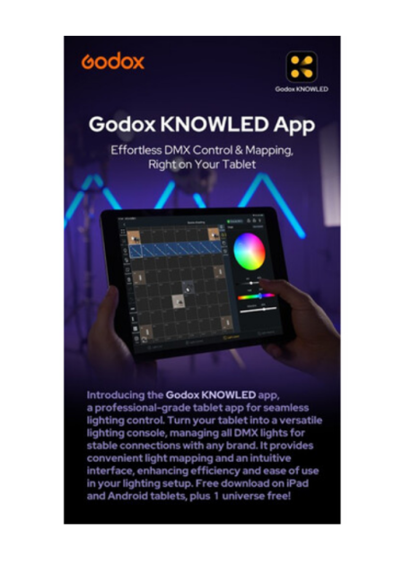 | Light control | On-body control, DMX‑512 / RDM, CRMX (LumenRadio), Bluetooth (Godox Light app), Art‑Net & sACN |