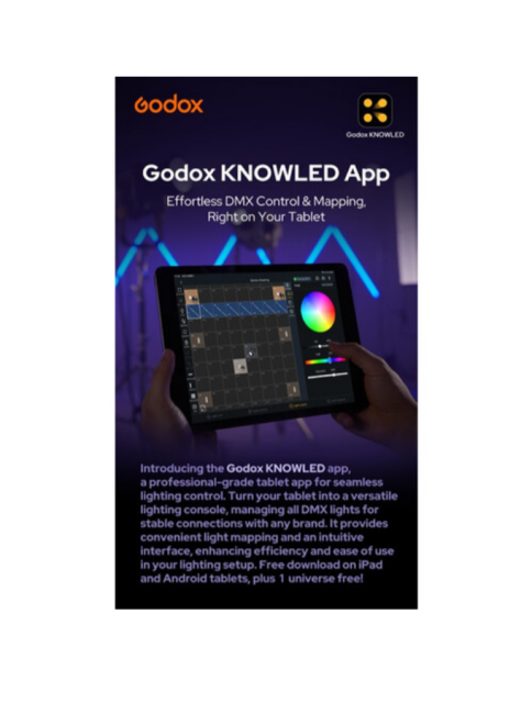 | Light control | DMX‑512, Bluetooth (Godox Light app), 2.4 GHz wireless, on‑device control |