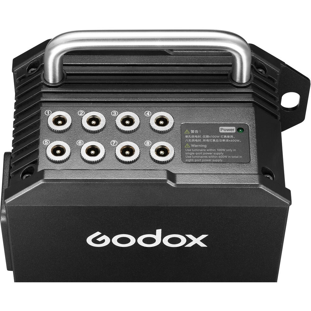 Godox Knowled kućište za punjenje s osam svjetala (TP-P600KIT) istovremeno napaja do osam cijevnih svjetala serije TL i TP, isporučujući ukupnu snagu do 600 W. Kompaktno i svestrano, kompatibilno je s svjetlima TL60, TL120, TL180, TP2R i TP4R, što ga čini idealnim za studije i snimanja na terenu.